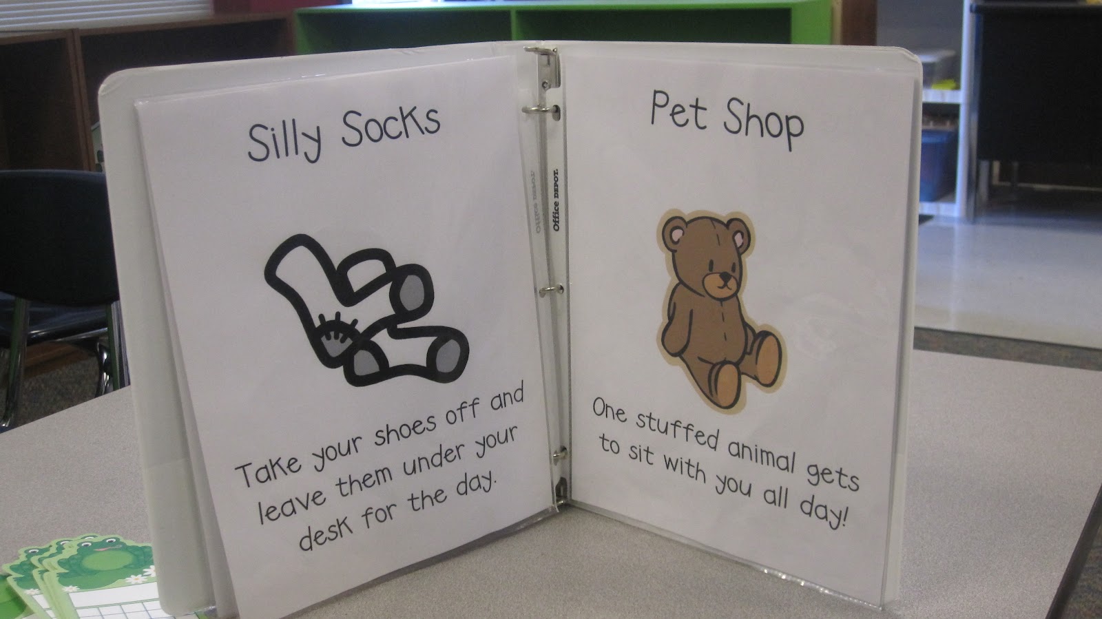 At the beginning of the day everyone starts on green. I number the clips instead of using their names. It's nice for when we have visitors.